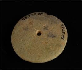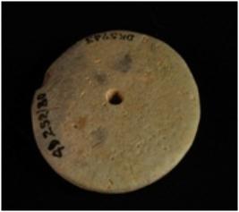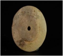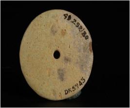 | Description / विवरण | Circular shaped faience disc center perforated, rounded outer edge. |