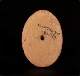 | Description / विवरण | A terracotta cart wheel with perforation in the centre. It has a flat surface applied with wash treatment on it and bulging hub. |
