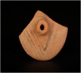 | Description / विवरण | A handmade, Well baked terracotta solid cart wheel with a perforation, circular in shape with bulging hub, plain flat surface, sides broken, surface treated with wash in dull red colour. Made with well levigated clay. |