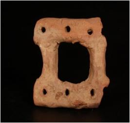 | Description / विवरण | A handmade terracotta part of cart frame with perforations, surface treated with wash in dull red colour. Made with well levigated clay, well baked. |