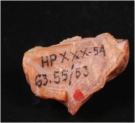 | Description / विवरण | Unidentified stone object. Uneven in shape, rough surface, red in colour, deep hole on surface. |