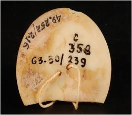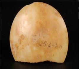 | Description / विवरण | Shell button, partly broken, Two perforation on middle for inserting thread, Smooth surface and circular shape. |