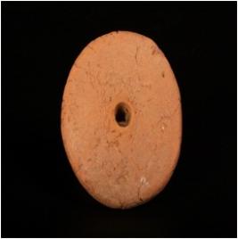 | Description / विवरण | Terracotta wheel, moulded long knob, perforated, round in shape edges are preper, top of knob is flat, red in colour. |