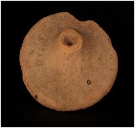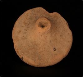 | Description / विवरण | Handmade terracotta wheel, moulded small knob, perforated, round in shape, but little chipped off, thin character, buff in colour. |
