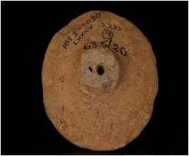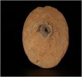 | Description / विवरण | Handmade, ill baked terracotta wheel, convex both side surface, hop in both side edges is chipped off, made with levigated clay. |
