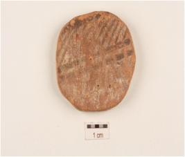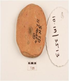 | Description / विवरण | A wheel made spindle whorl, uneven edges, disc shaped, depression in the middle, red slip treated on surface, one side has black painting. |
