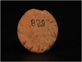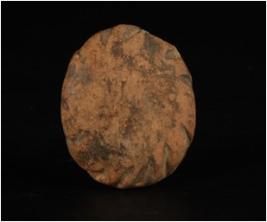 | Description / विवरण | Terracotta disc with design on edges, black slip, circular shape and notched on surface decoration. |