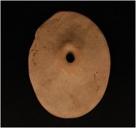 | Description / विवरण | Handmade terrrcotta wheel, moulded small knob with perforation, edges are chipped off, round in shape, thin in character and finger impressions are visible, wash treatment is given. |