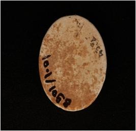 | Description / विवरण | A circular shaped unfinished Button, made on Steatite, traces of alkali treatement, given heat treatment. Flat smooth surface on the bottom and convex shaped surface on the top portion, plano-convex in section. |