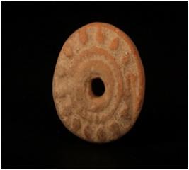 | Description / विवरण | Handmade, well baked terracotta wheel, one side decorated with embosed rosette design, another side is smooth, made with well levigated clay and wash treatment was given. |