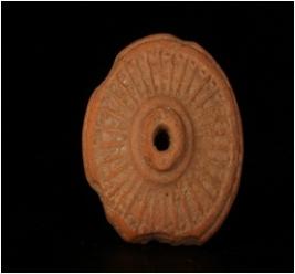 | Description / विवरण | Well baked, handmade terracotta wheel, round in shape with embased spoke design on obverse side, edges are little chipped off, small flat knob is visible, red in colour. |