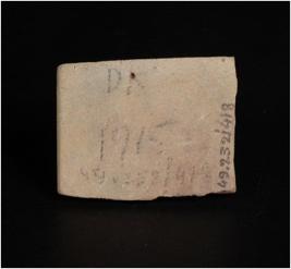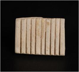 | Description / विवरण | An indeterminate object, made with Faience, surface treated with white slip and well baked. Flat surface on one side and decorated with grooves on the other side, rectangular in section, broken along one end. |