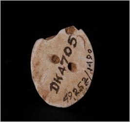 | Description / विवरण | A circular shaped Button, made on Steatite, surface treated with an alkali and given heat treatment. Flat surface on the bottom and convex shaped on the top, plano-convex in section. |