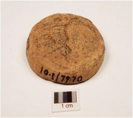 | Description / विवरण | A stone disc, discular shape, rough surface, smooth surface. |