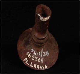 | Description / विवरण | Copper stamp circular base, cylinderical holder, flat circular top, hollow with circular ring and corroded. |