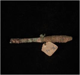 | Description / विवरण | Fragment of a antimony rod, one bulbous end and other is partly broken, eroded surface. |