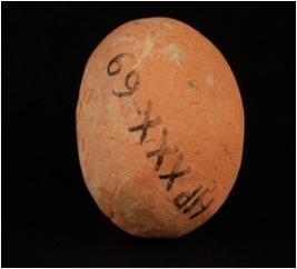 | Description / विवरण | Handmade, well baked terracotta sling ball, circular in shape. The surface is smooth and red wash treatment was given. Surface is slightly chipped off. |