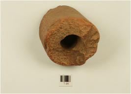 | Description / विवरण | Fragment of an tubular shaped indeterminate terracotta object, treated with red slip on exterior,has multiple grooves inside. |