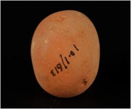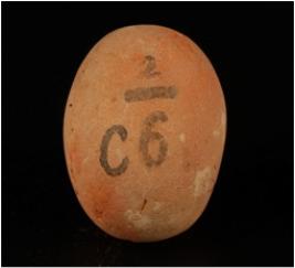 | Description / विवरण | Small handmade terracotta sling ball. Made of well levigated clay, red in colour.The ball is almost round in shape and surface has wash treatment. |