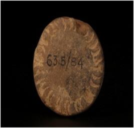 | Description / विवरण | Terracotta disc with decorated nail marks on edge. |