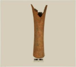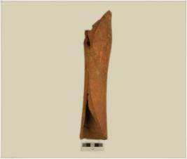 | Description / विवरण | A fragment of drain of has damaged sides,cylindrical profile,of medium fabric showing an oxidized core. |