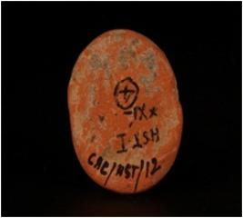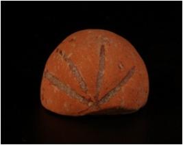 | Description / विवरण | Fragment of terracotta sling ball with incised design. |