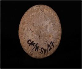 | Description / विवरण | Terracotta disc with decorated edge and rough surface. |