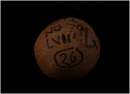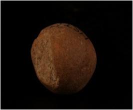 | Description / विवरण | Fragment of terracotta Flat sling ball. |