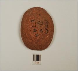 | Description / विवरण | A fragment of stone ball of stone rough surface, of medium fabric. |