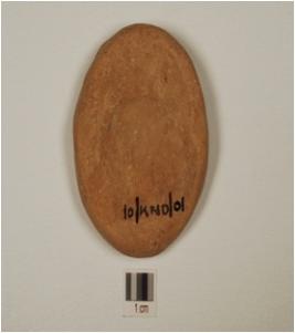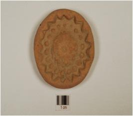 | Description / विवरण | A handmade disc of terracotta has floral pattern on the one side. |