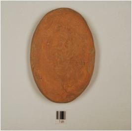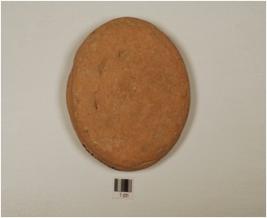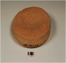 | Description / विवरण | A hand made disc of terracotta, cirular in shape, flat base and depressed upper middle portion |