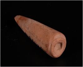 | Description / विवरण | Handmade, well baked terracotta small cone, the base is circular in shape and top is pointed, the pointed area is slightly broken, the surface is smooth and wash treatment was given. |