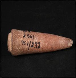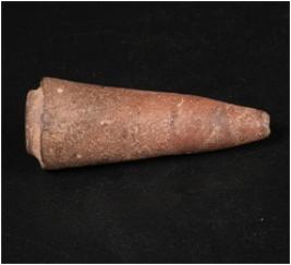 | Description / विवरण | Handmade terracotta cone, pointed broken in end with circular top, purpose cannot be determined, well levigated, surface dull red in colour. |