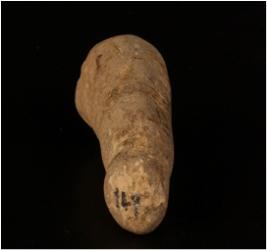 | Description / विवरण | A handmade indeterminate terracotta object, may be leg of animal, grey colour, one uneven broken end, well fired, made with well levigated clay. |