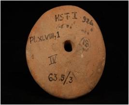| Description / विवरण | Terracotta plano- convex wheel with star shaped design on edge and perforation. |