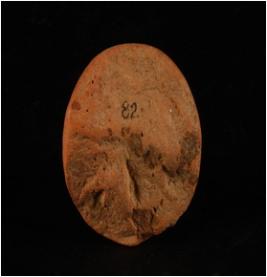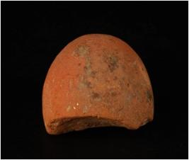| Description / विवरण | Fragment of terracotta handmade sling ball with smooth surface and circular in shape. |