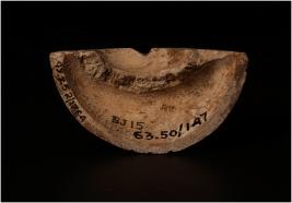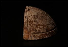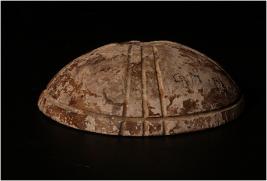 | Description / विवरण | Fragment of a shell, round in shape, decorated with curve and circular lines. |