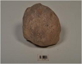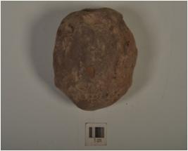 | Description / विवरण | A terracotta cake with circular shape and rough surface. |