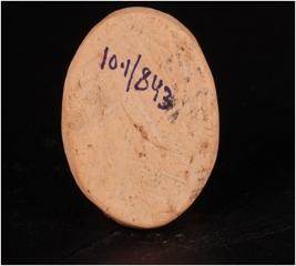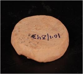 | Description / विवरण | Terracotta handmade disc with thumb impression on the surface. |