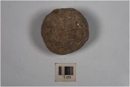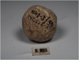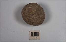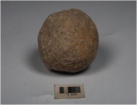 | Description / विवरण | A small stone ball with rough surface and circular section. |