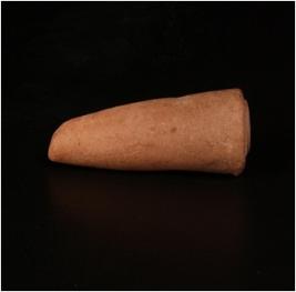 | Description / विवरण | Terracotta handmade cone,conical in shape with smooth surface. pointed flat end an circular uneven top. |