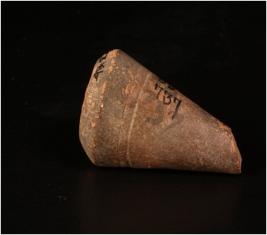 | Description / विवरण | Terracotta handmade cone,conical in shape with smooth surface. pointed flat end an circular base. circular incised design. |