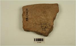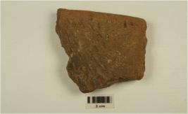 | Description / विवरण | Fragment of an indeterminate object of red ware,decorated with multiple oblique incised strokes on the interior. |