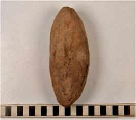 | Description / विवरण | A oval shaped mushti type terracotta cake with uneven rough surface having thumb impression on both sides of medium fabric and ill fired. |