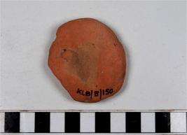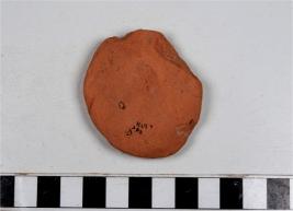 | Description / विवरण | A terracotta miniature circular shaped cake having finger impression on one side of smooth surface. |