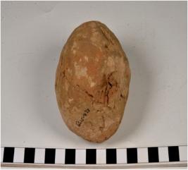 | Description / विवरण | A terracotta cake with oval shape, of medium fabric. |