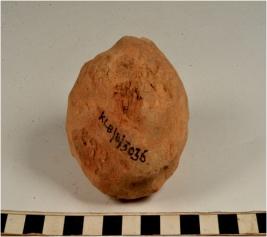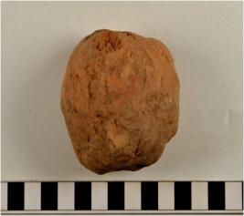 | Description / विवरण | A terracotta round shaped cake having uneven rough surface. |