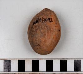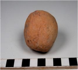 | Description / विवरण | A terracotta cake round in shape and rough surface. |