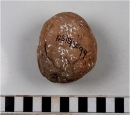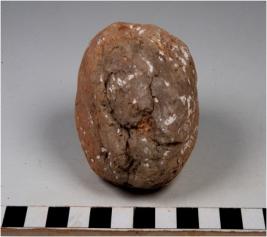 | Description / विवरण | A terracotta cake round in shape and uneven rough surface. |