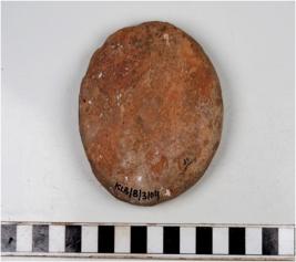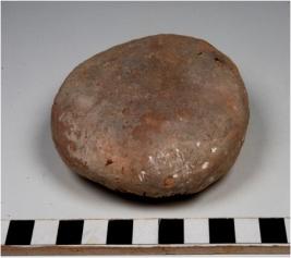 | Description / विवरण | A terracotta cake circular in shape, having thumb impression on one side and uneven rough surface. |